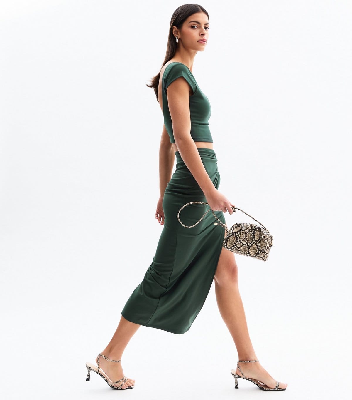 Pair with a black cropped top and silver stiletto heels for a striking evening look.
