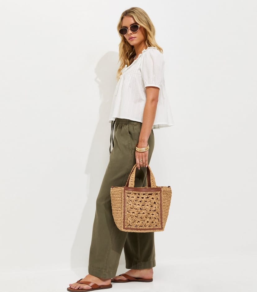 The New Look Khaki Twill Cotton Wide Leg Trousers is ideal for casual, everyday.