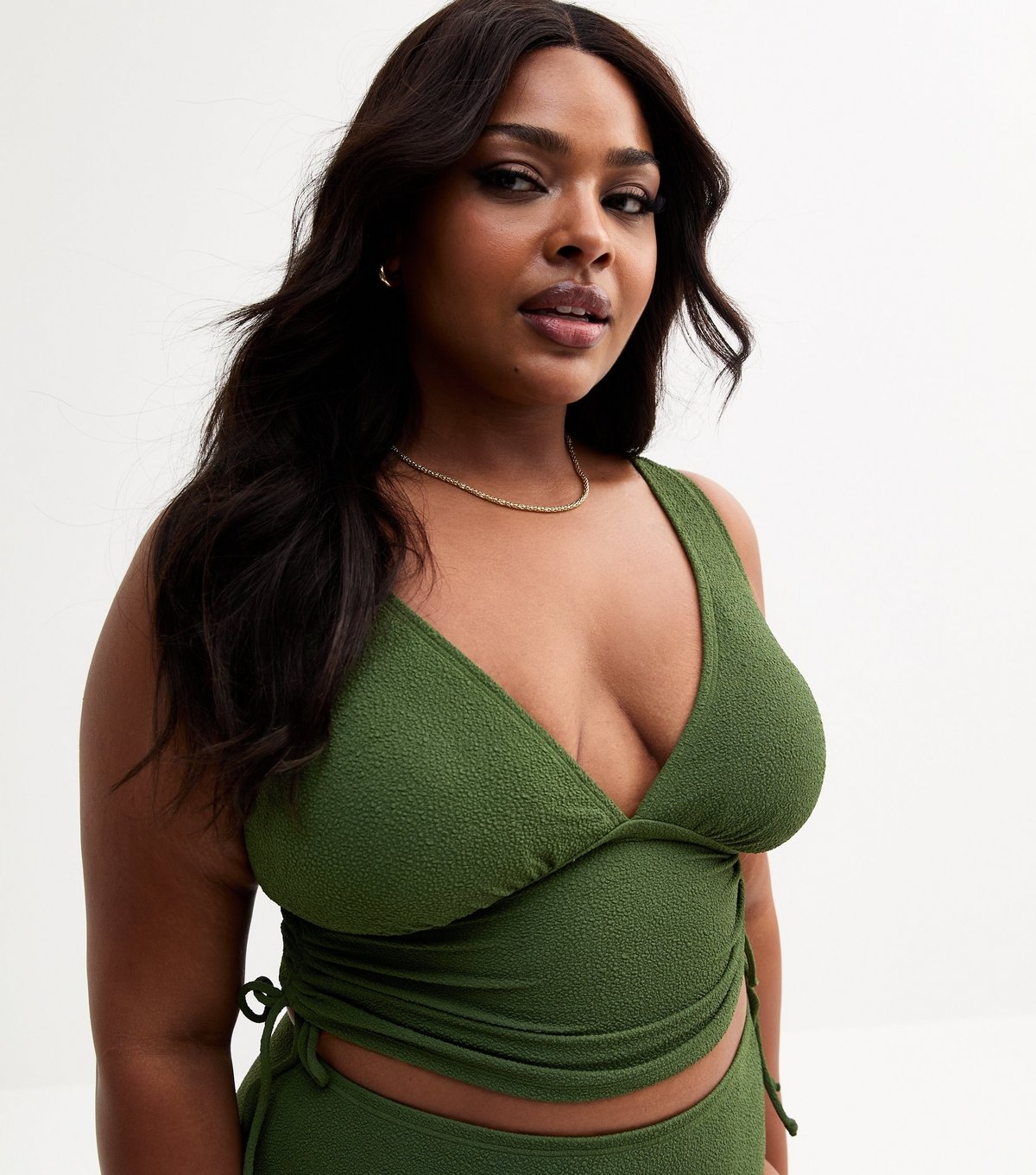 The New Look Khaki Textured Jersey Plus Size Tankini Top is available in sizes 20, 22, 24, 26, 28.