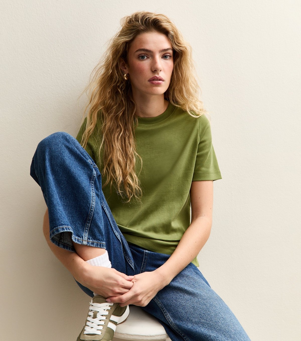 The New Look Khaki Heavyweight Cotton T-Shirt is available in sizes 10, 12, 14, 16, 18, 20, 6, 8.