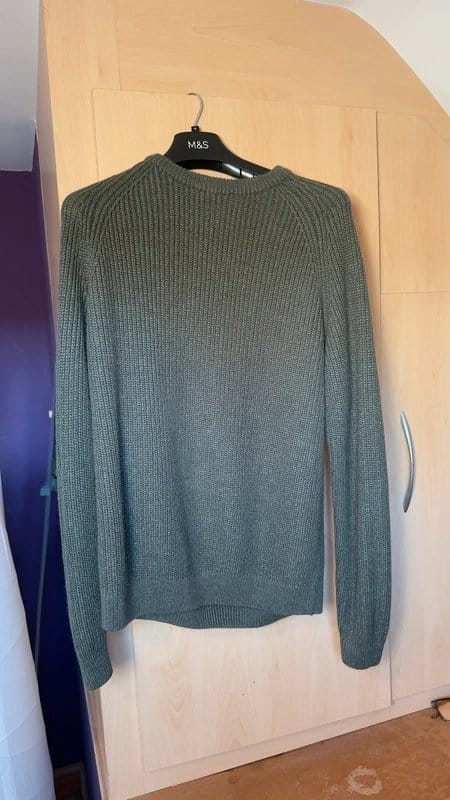 The New Look Dark Green Knitted Crew Neck Sweater is available in sizes L.