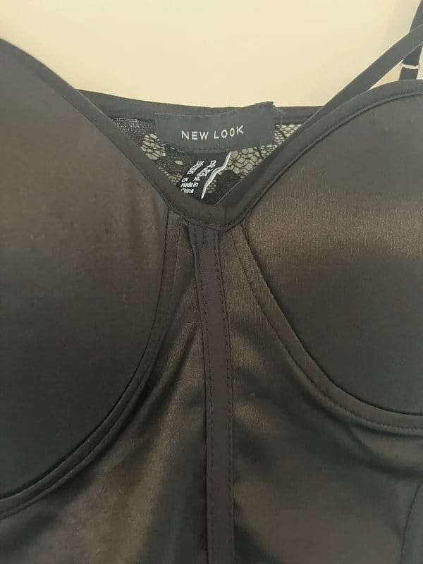 Stylish black lace bodysuit from New Look featuring a sheer lace design and adjustable straps. Perfect for a glamorous and elegant look.
