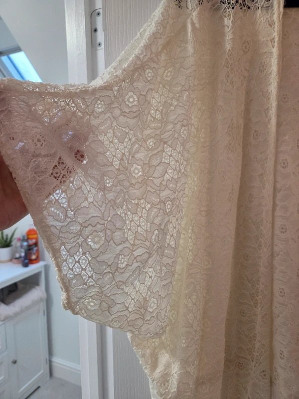 The New Look Cream Lace Kimono with Tassels is available in sizes M.