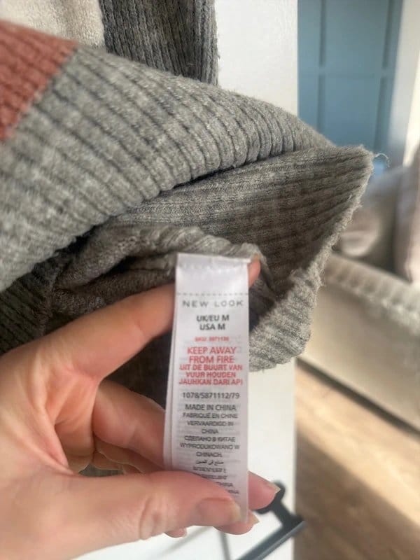 The New Look Crochet Jumper in Grey and Pink is available in sizes M.