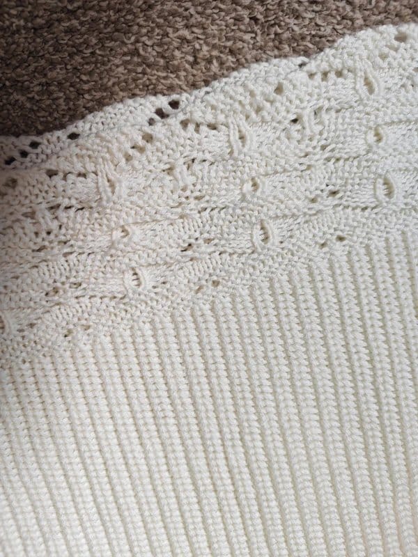 Delicate cream crochet top with intricate lace patterns. Perfect for a casual and elegant look.
