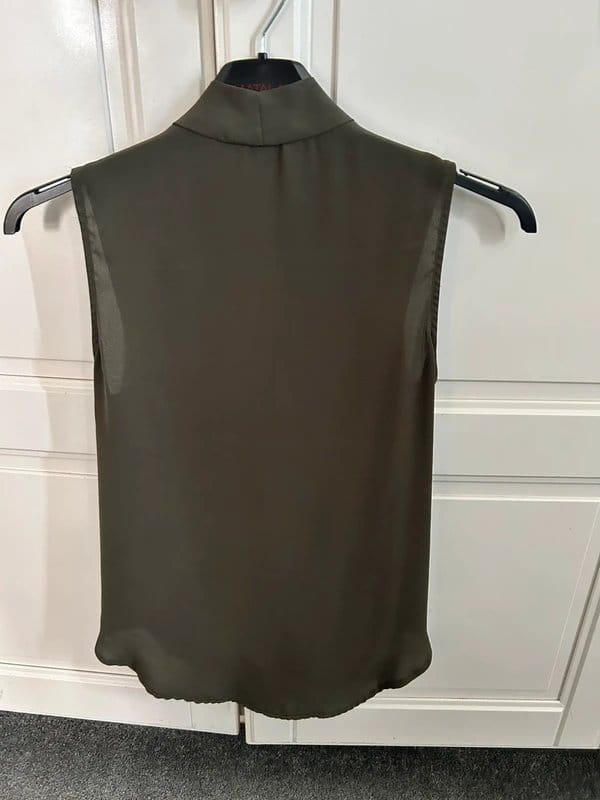 The New Look Khaki Chiffon Sleeveless Top Size 10 is available in sizes S.