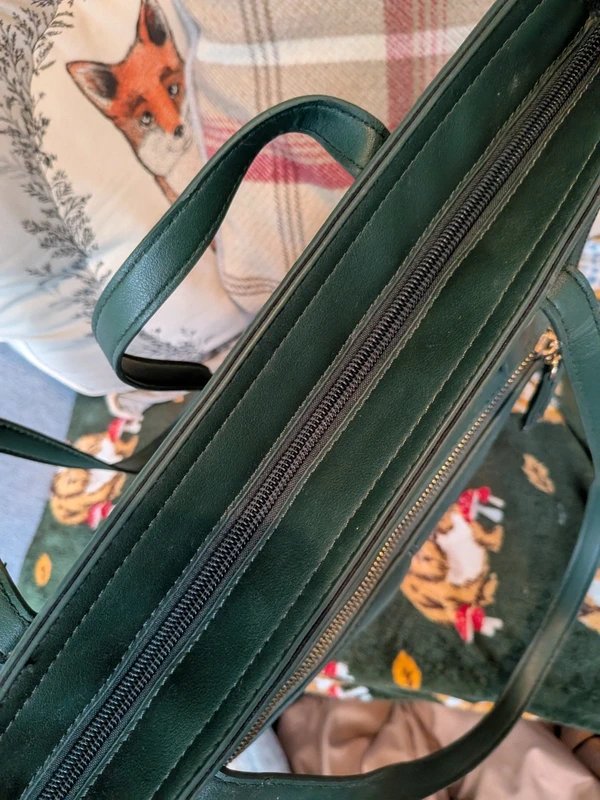 Large Handbag Green by New Look — a versatile accessory in dark green faux leather. Approx 40cm in length and 32cm in height, this handbag features inner compartments for organized storage. The sleek design and durable material make it perfect for everyday use.