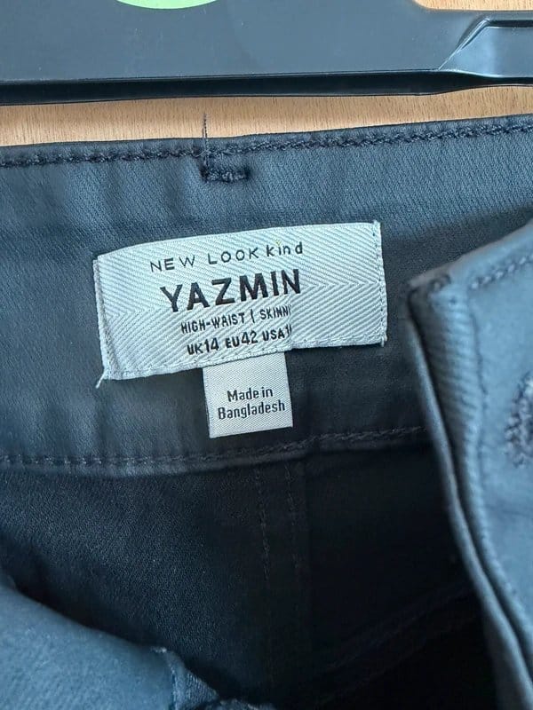Stylish black leather-like skinny jeans by New Look. High-waisted with a slim fit, perfect for a modern, edgy look. Made from a smooth, shiny fabric for a luxurious feel.