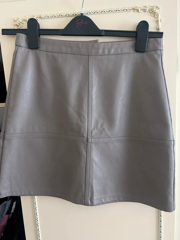 The New Look Leather Look Skirt in Grey is available in sizes S.