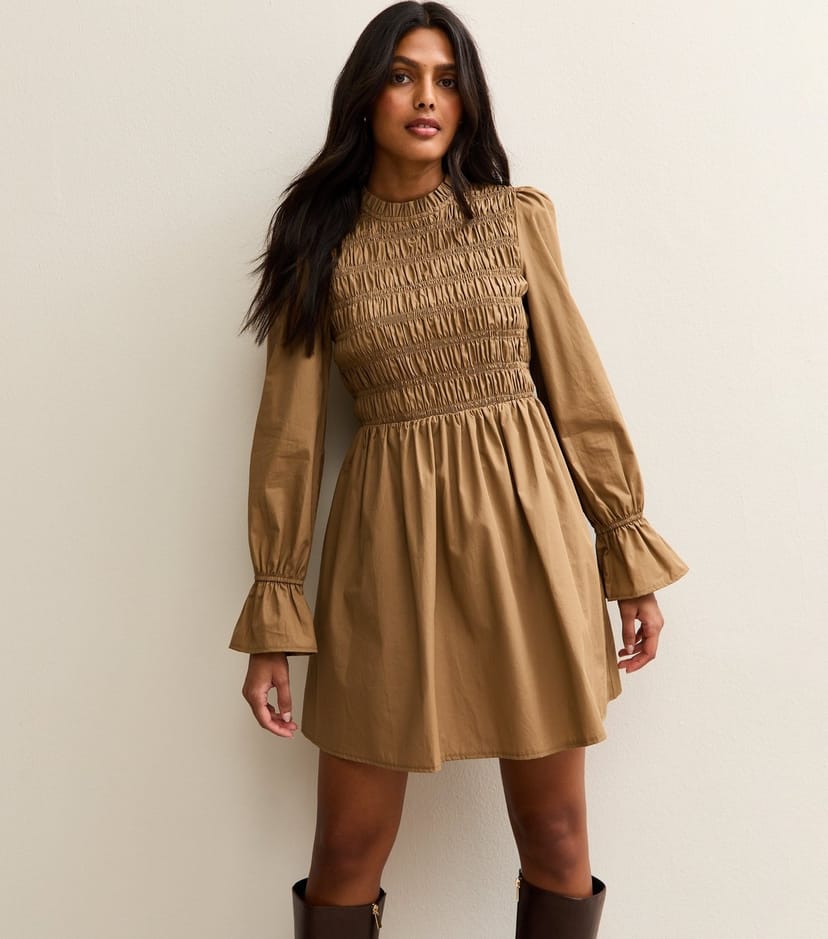 The New Look Light Brown Shirred Bodice A-line Mini Dress is ideal for casual, everyday, date-night.