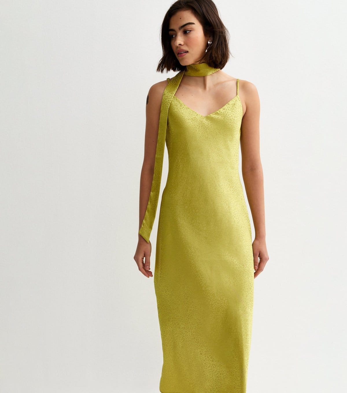 Back to New Look Light Green Satin Slip Midi Dress with Scarf →