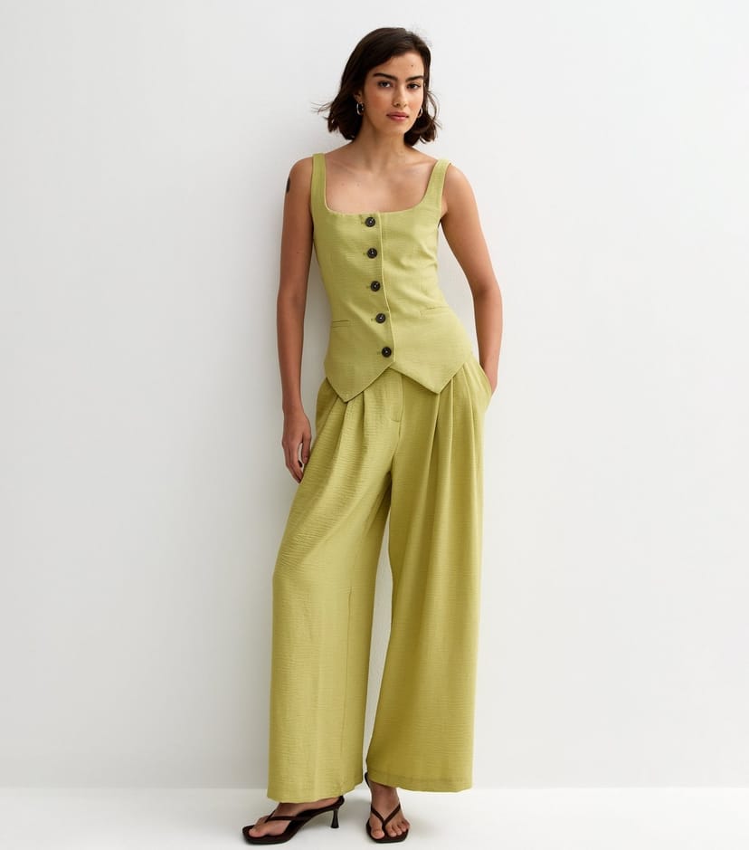 The New Look Light Green Wide Leg Pleated Trousers is made from lightweight woven.