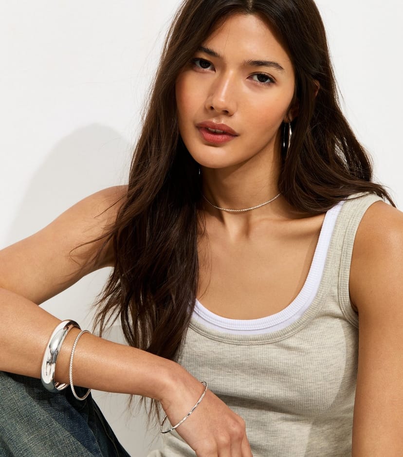 This grey vest top features contrast edges for a layered finish. Pair the ribbed staple with your favourite jeans for a laid-back look.