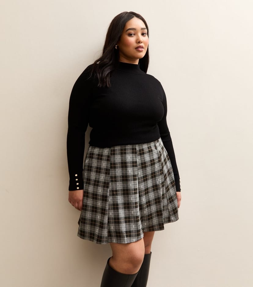 The New Look Light Grey Checked Mini Skirt for Women is available in sizes 18, 20, 22, 24, 26, 28, 30, 32.