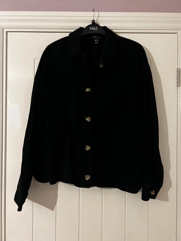 Stylish New Look cropped jacket in black. Features a classic collar, button front, and long sleeves. Made from soft fabric for comfort and style.