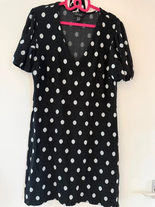 The New Look Polka Dot Midi Dress in Black is available in sizes L.