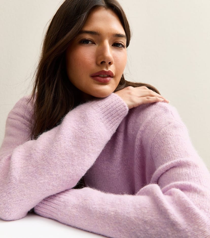 This oversized lilac knit jumper from New Look is perfect for casual days out. It features a crew neckline and long sleeves with a dropped shoulder design. The textured knit fabric adds a cozy and stylish touch to your everyday outfits.