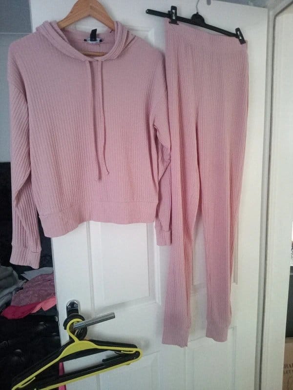 The New Look Pink Ribbed Lounge Set is available in sizes M.