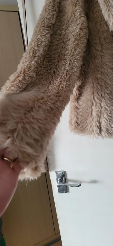 The New Look Fluffy Coat in Beige is available in sizes M.