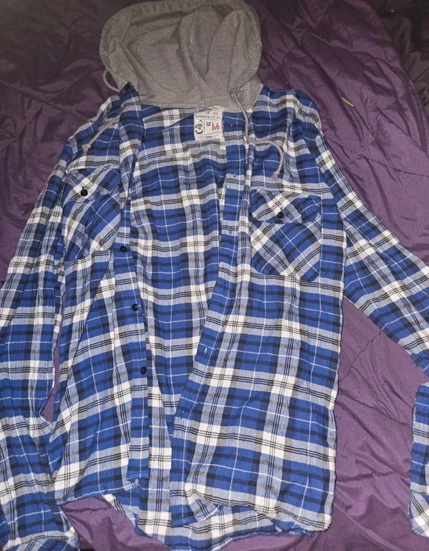The New Look Blue & White Hooded Check Plaid Shirt is available in sizes M.
