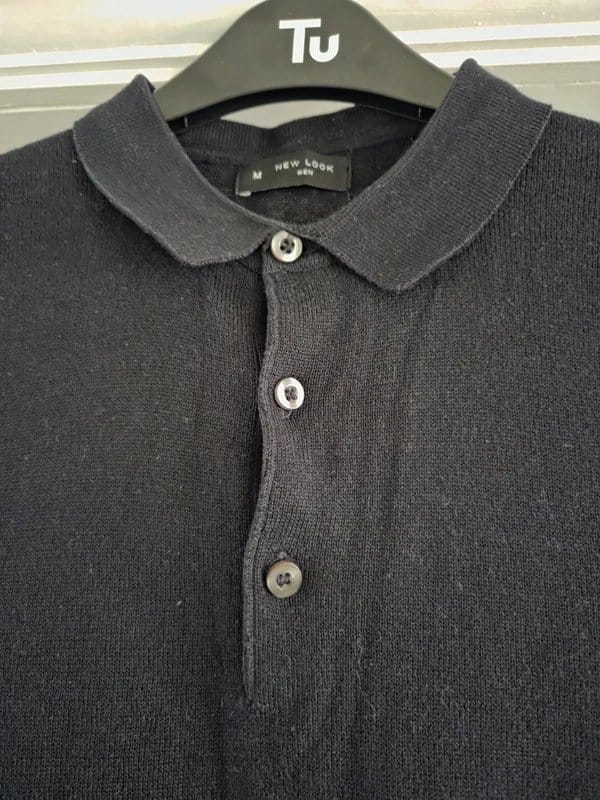 Stylish navy fine knit long-sleeved top by New Look. Crafted from a soft, breathable fabric, this top features a classic collar and button placket for a smart yet comfortable fit. Ideal for layering or as a standalone piece.