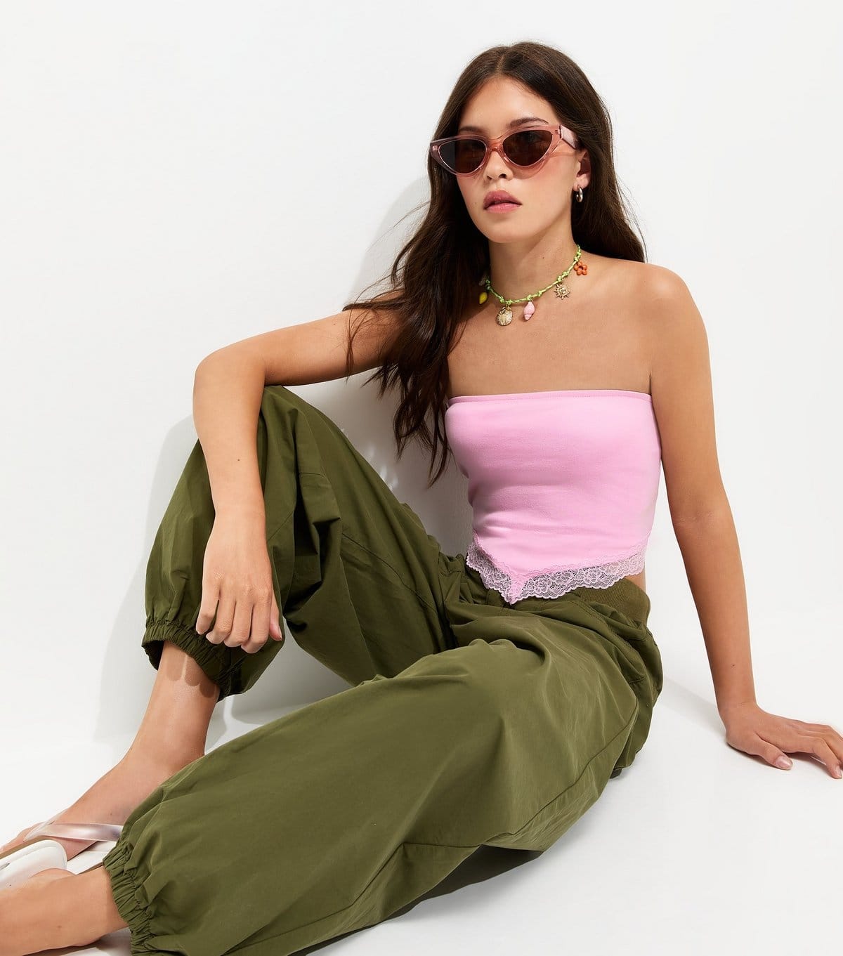 The New Look Pink Lace Trim Bandeau Top is ideal for casual, everyday.