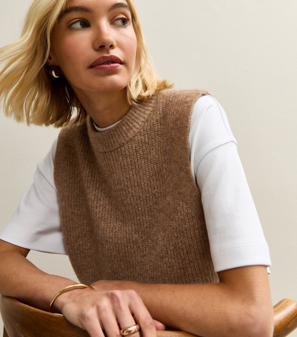 The New Look Dark Mink Ribbed Crew Neck Vest is made from wool, polyester.