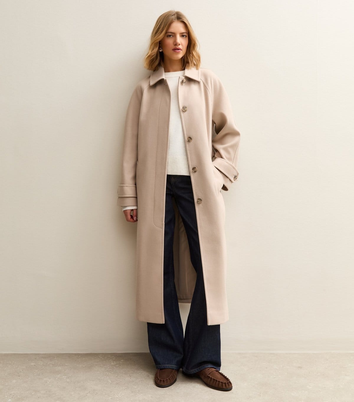 See all outfit ideasThis long mink single-breasted coat is your go-to for effortless formal style. It will become a staple for your work wear rotation.