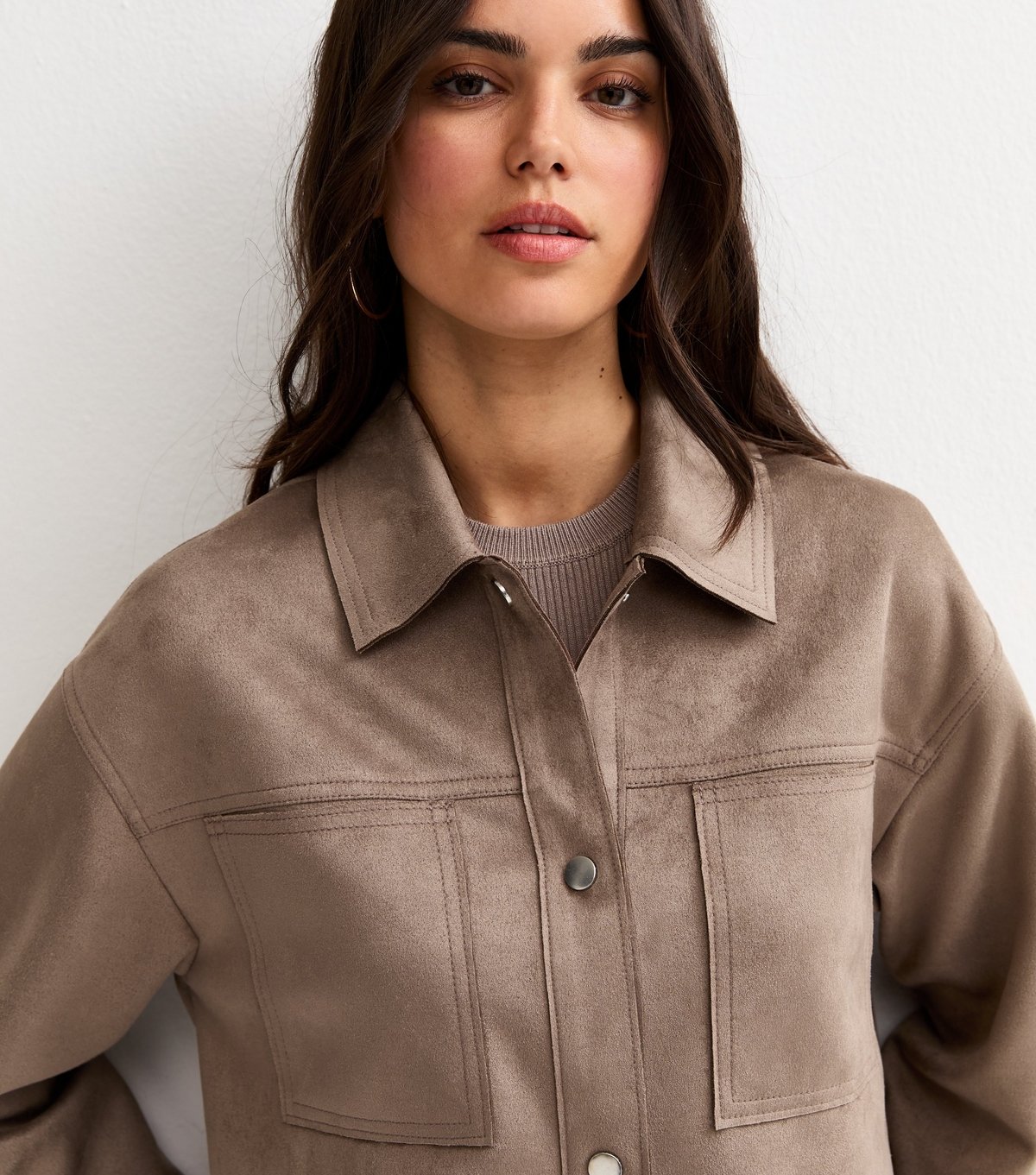 The New Look Mink Faux Suede Boxy Shacket is made from faux suede.