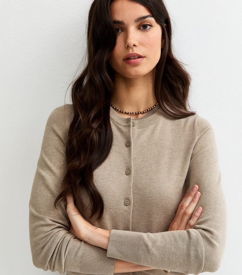The New Look Mink Knit Crew Neck Button-Up Cardigan is ideal for work, casual, evening.