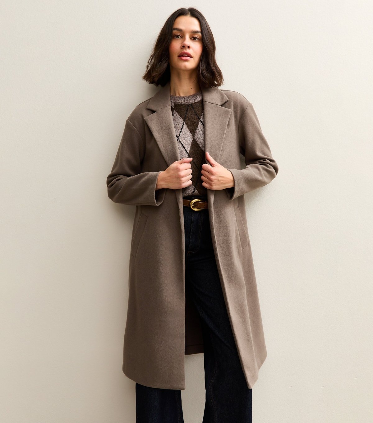A versatile mink longline coat from New Look, perfect for both daytime and evening events. Crafted from woven fabric, it features a notched lapel neckline and side pockets. Its mid-length and formal design make it a wardrobe staple.
