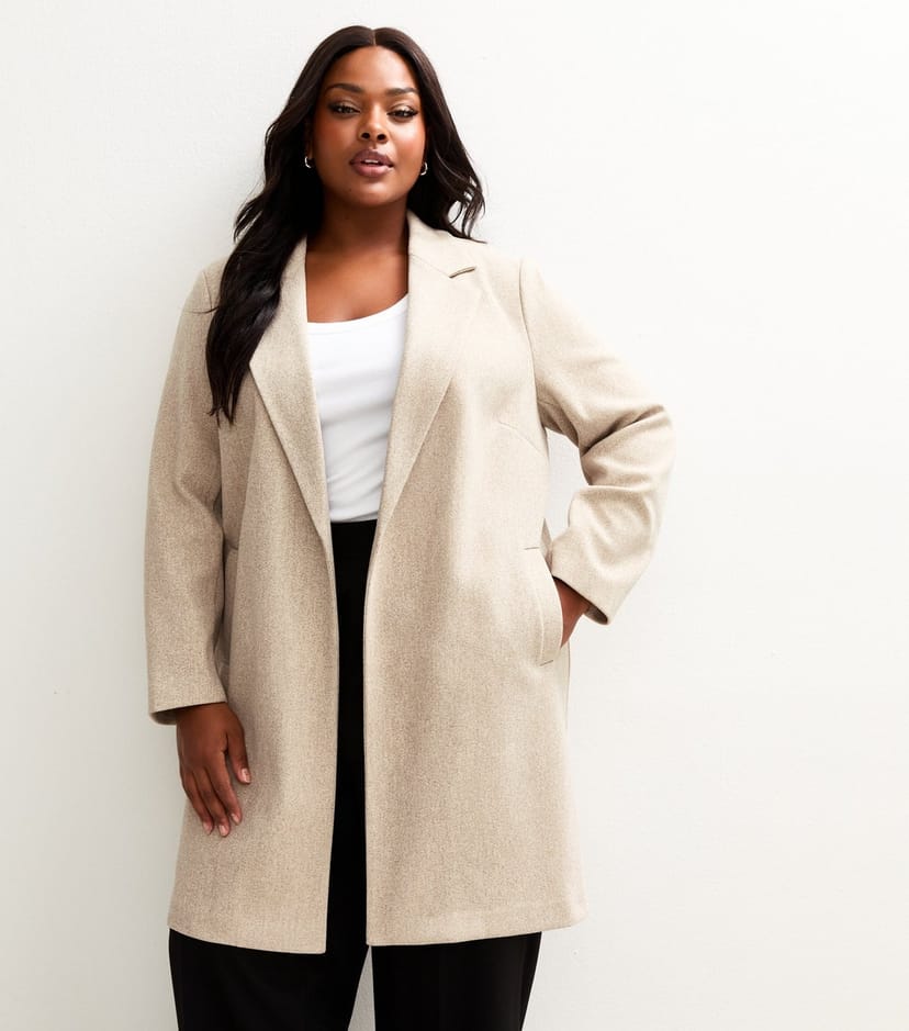 Elegant formal coat in a mink hue from New Look. Its tailored fit and notched lapels add a touch of sophistication. Perfect for any formal occasion.