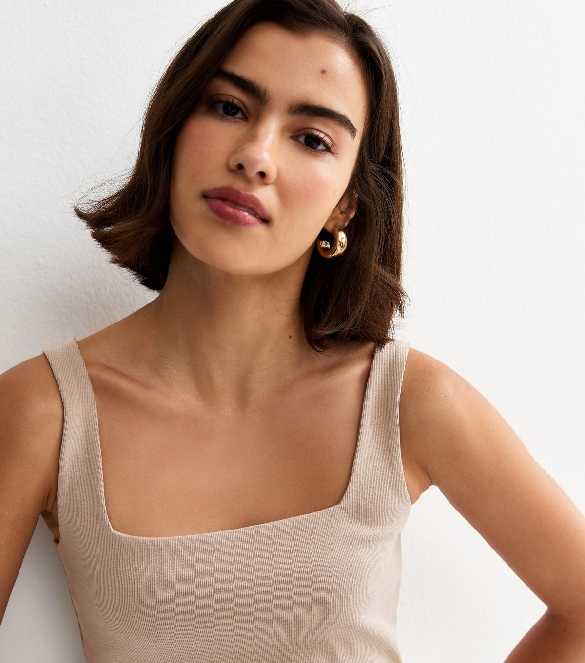The New Look Mink Square Neck Vest Top is made from jersey.