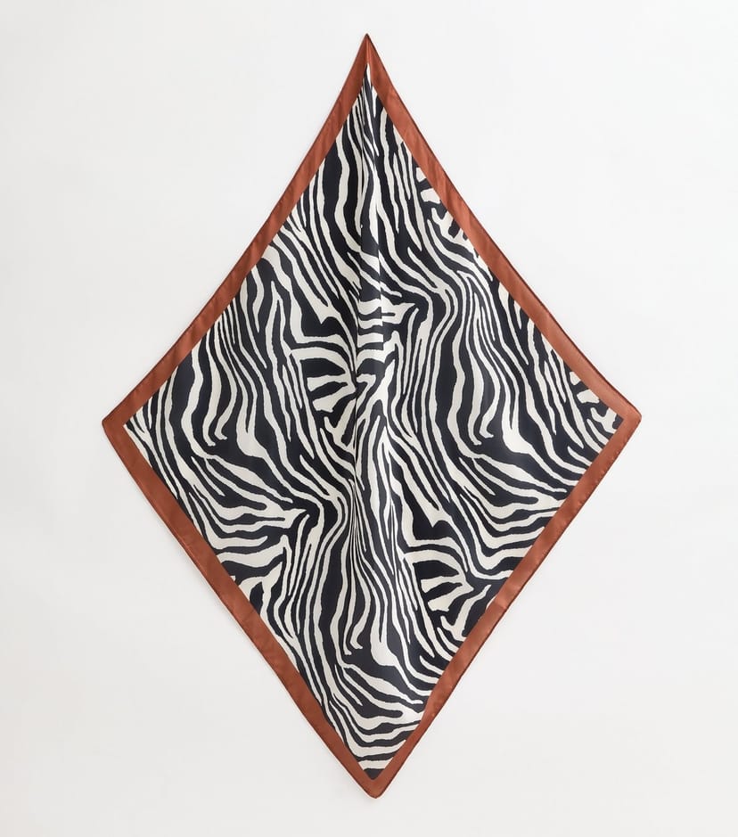 Bold zebra print headscarf in black and white. Perfect for adding a stylish touch to any outfit. Made from a soft and comfortable fabric.
