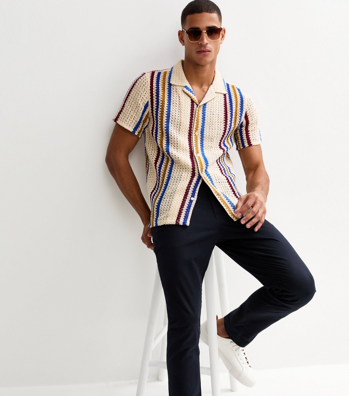 The New Look Multicoloured Striped Textured Short Sleeve Shirt is made from crochet.