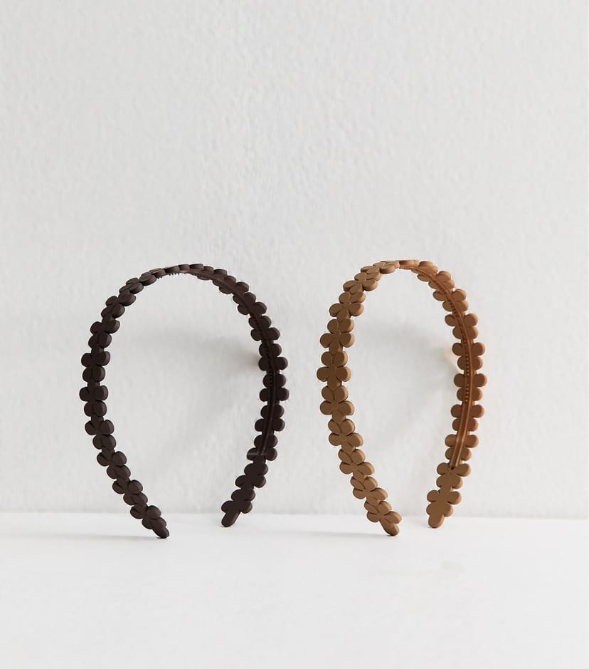 The New Look Brown and Tan Floral Headbands Pack of 2 is made from plastic.