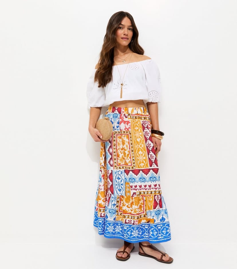 The New Look Multi-Colour Patchwork Print Midi Skirt is ideal for casual, beach, festival.