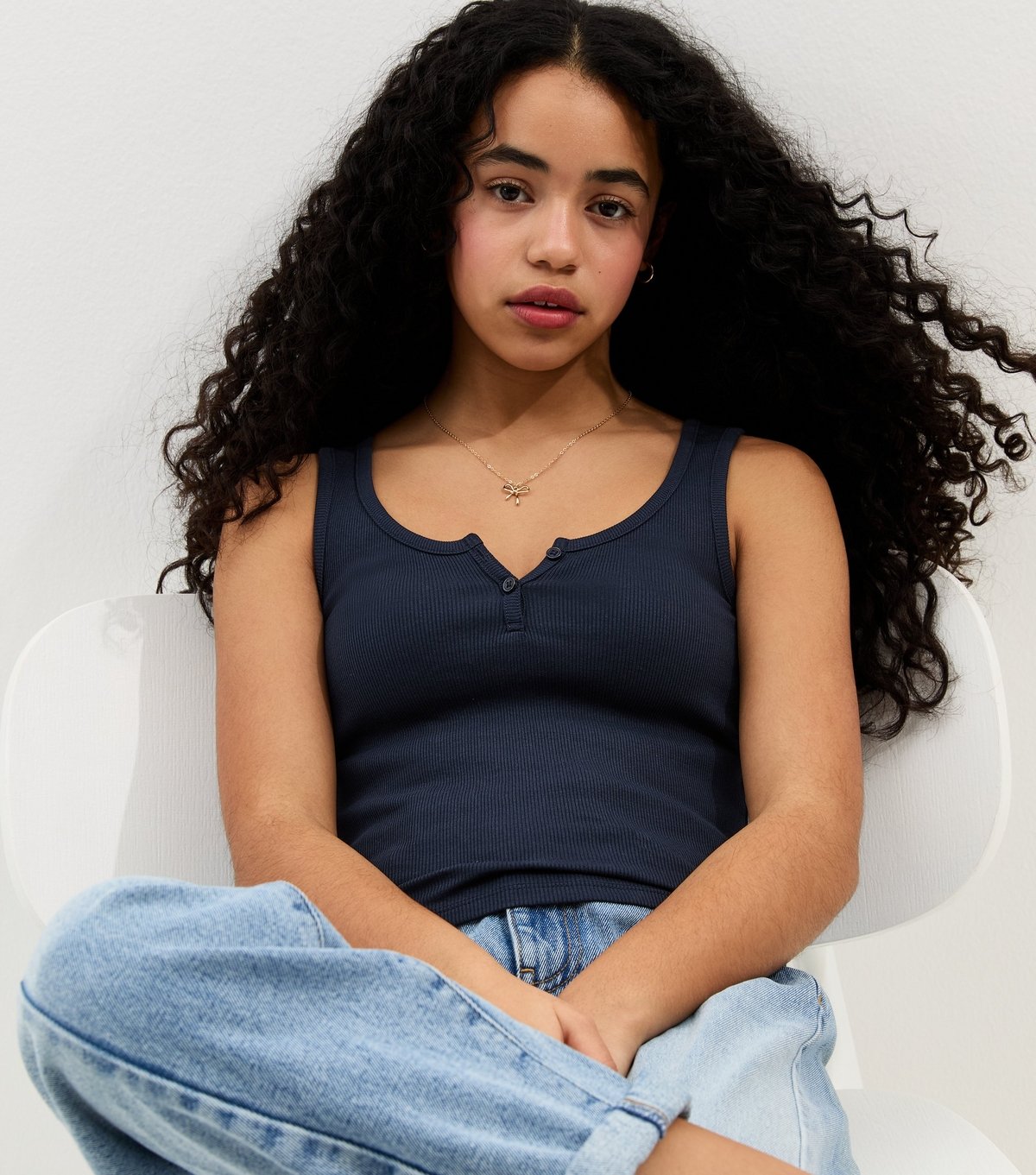 The New Look Navy Jersey Vest Top for Girls is ideal for casual, everyday.