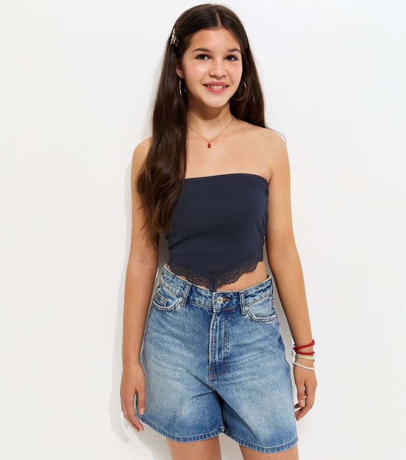 The New Look Navy Lace Trim Bandeau Top is available in sizes 10-11 years, 12-13 years, 14-15 years, 9 years.
