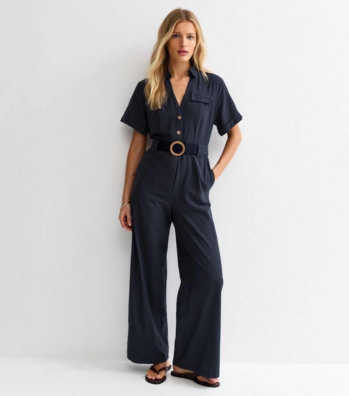 The New Look Navy Jumpsuit with O-Ring Belt is made from woven.