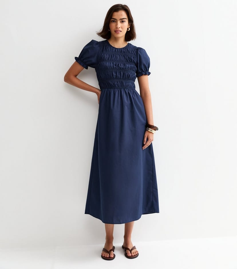 The New Look Navy Smock Midi Dress is ideal for casual, daytime, warm weather.