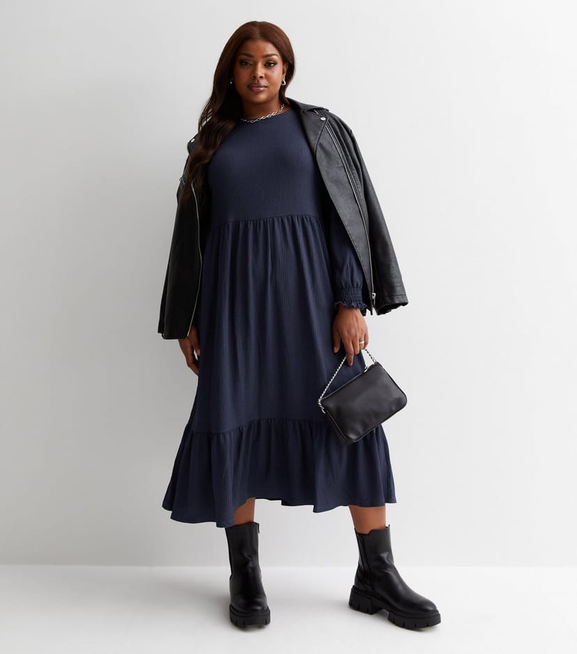 The New Look Navy Crinkle Jersey Smock Midi Dress is available in sizes 20.