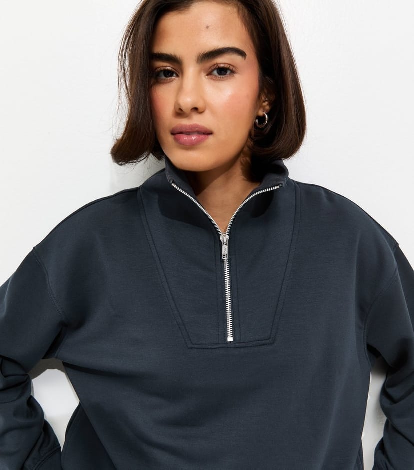The New Look Navy Jersey Quarter Zip Sweatshirt is made from jersey.