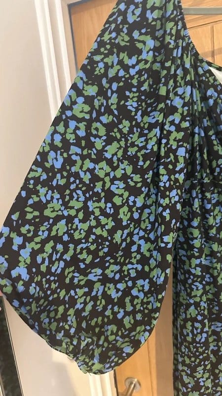 The New Look Green & Blue Ruche Bodycon Dress is available in sizes L.