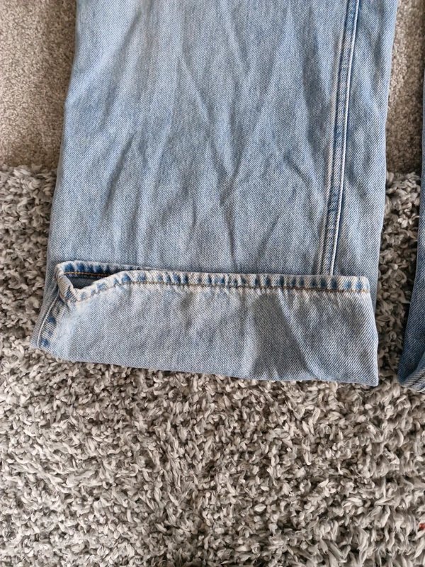 The New Look Adele Wide Leg Jeans in Light Blue is available in sizes M.