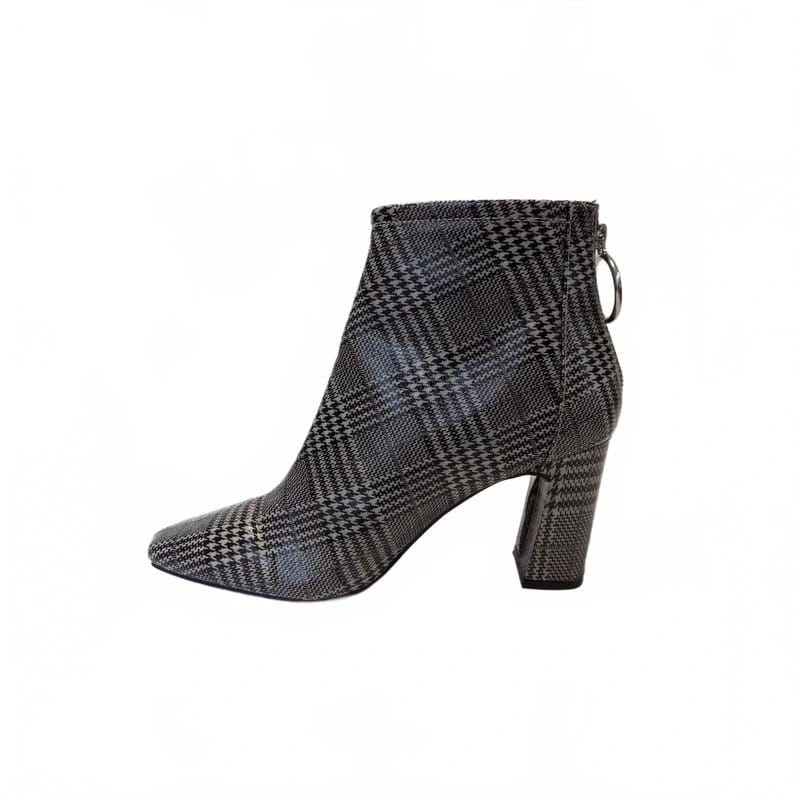 Stylish New Look ankle boots in a multi-check print faux leather finish. Featuring a square toe, 3.25 inch block heel, and lightly padded insole for all-day comfort. Perfect for adding a bold statement to any outfit.