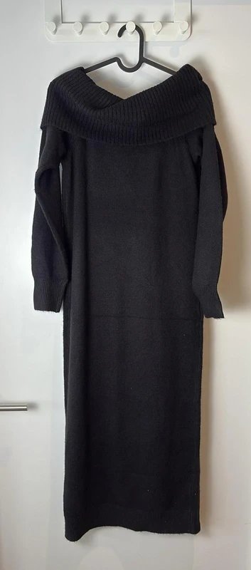 The New Look Bardot Style Knitted Long Dress in Black is available in sizes S.