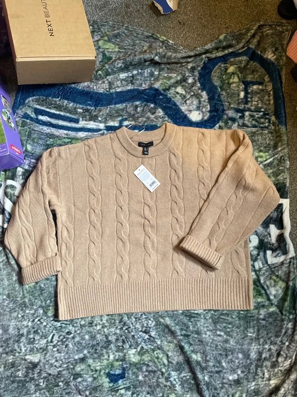 The New Look Cable Knit Jumper in Beige is available in sizes L.