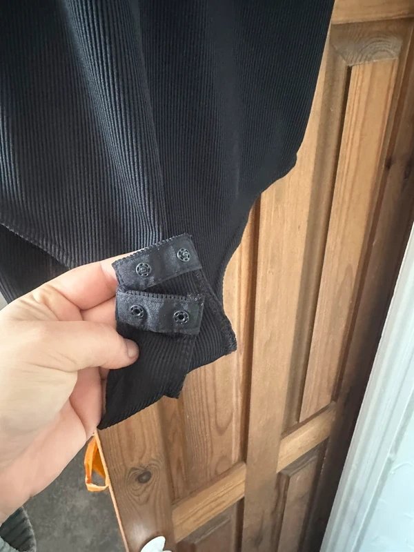 The New Look Black Bodysuit with Square Neckline is made from corduroy.