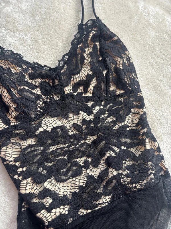 The New Look Lace Bodysuit in Black is available in sizes S.
